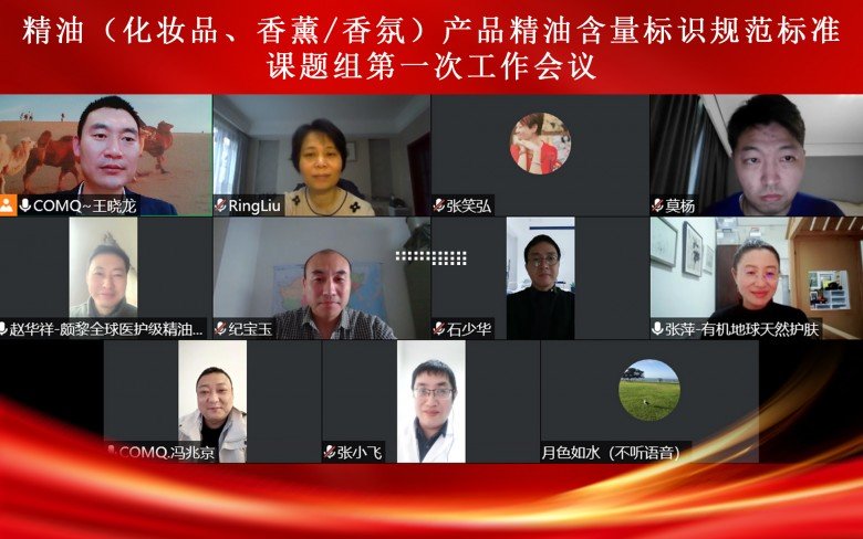 11月19日由中国民间中医医药研究开发协会立项的精油(化妆品、香薰/香氛)产品精油含量标识规范团体标准第一次工作会议在线上成功召开。