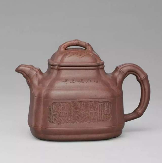 ▲紫泥四方竹鼎壶