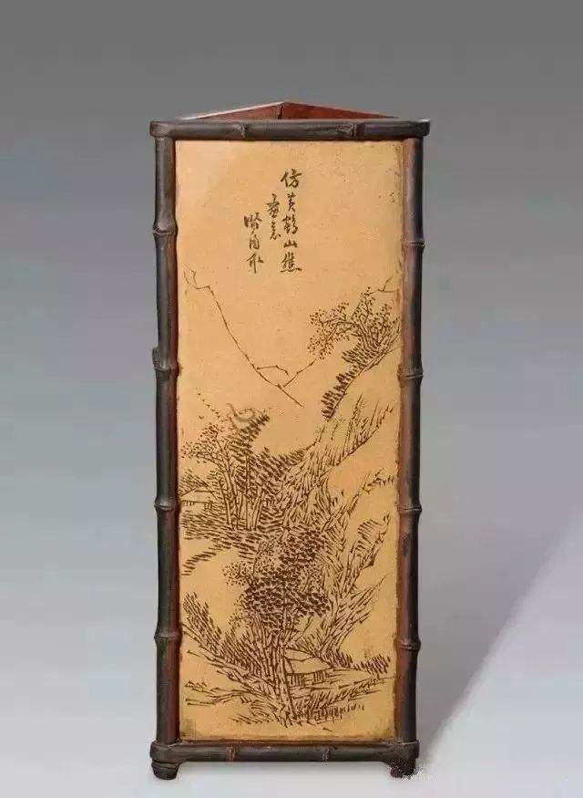 ▲陈和大(石如)紫砂诗纹笔筒