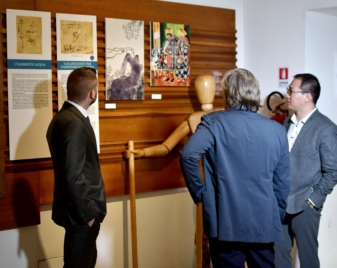 开幕现场,博物馆馆长Augusto Biagi先生和意大利达芬奇国际艺术交流协会副主席Alessandro Petrini 先生分别致辞。他们在致辞中强调:“很荣幸我们与芬奇文化携手,在这里展出了非常重要的中国艺术家们的艺术作品。对我们来说,这是一次扩展文化眼界的好机会,是一次中国和意大利两国文化交流分享的重要契机。达芬奇是一位才华横溢、不拘一格的伟人,他更是一位热衷旅行的旅人;他环游了意大利、法国等多个国家,探索文化和美术,能在与芬奇文化的合作下展出这些优秀的作品,我们感到非常荣幸和骄傲。”