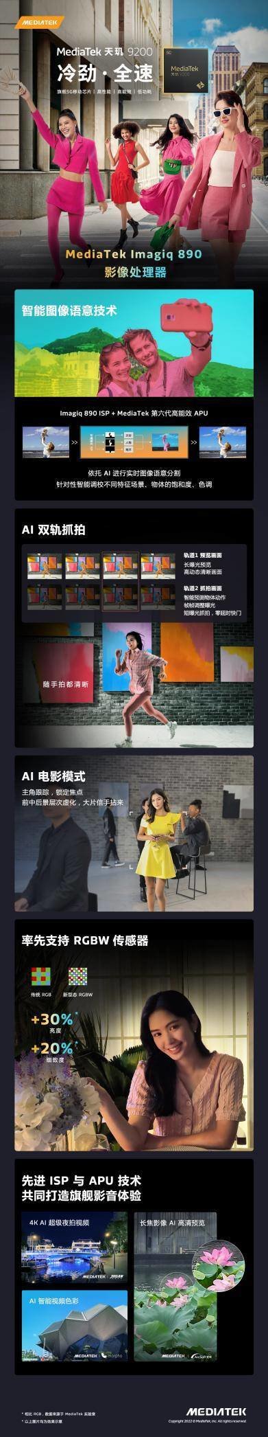 作为联发科新一代旗舰芯片,天玑9200延续了高性能、高能效、低功耗的天玑旗舰基因级特性,在实现性能、能耗双重突破的同时,在影像方面也实现了诸多革新,为用户带来更出色的拍摄体验。近日,联发科发布了影像技术海报,让我们来一睹天玑9200在影像方面的先进特性。