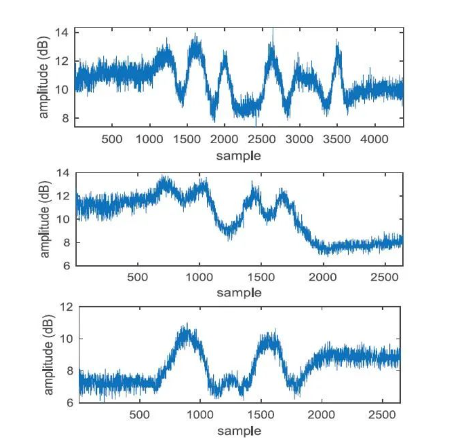 当物体跨越每个菲涅尔区边界时,接收信号会以波峰或波谷的形式出现;由于椭圆不均匀的特性,同样的物体运动在不同方向所切割的菲涅尔区波峰波谷数量不等;而沿着椭圆运动的物体,因反射信号路径长度保持不变,最终接收的信号也会稳定不变。
