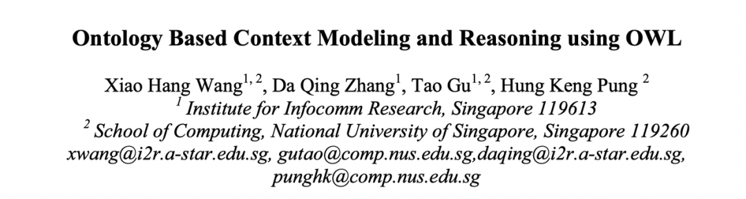 “这就相当于定义了一个概念字典,又能利用关系做推理。”这给了他极大的启发。张大庆立即和团队讨论如何将 Ontology 的概念应用到情境建模中,提出了一个基于“Web Ontology Language(OWL)”标准的层次情境模型 CONON,并在 CONON 的基础之上构建了情境中间件 Semantic Space 和 SOCAM,可对情境进行推理和一致性检查,并能支持对情境感知应用的快速敏捷开发。