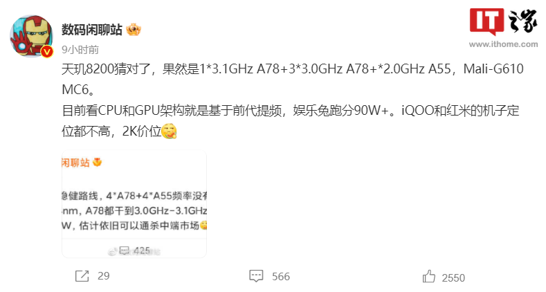 小米 Redmi 和 iQOO 的天玑 8200 新手机售价在 2000 元价位。