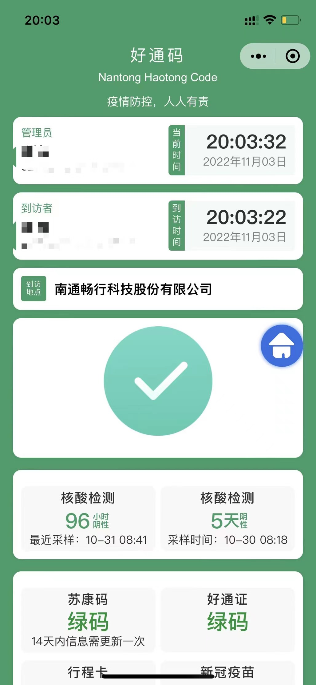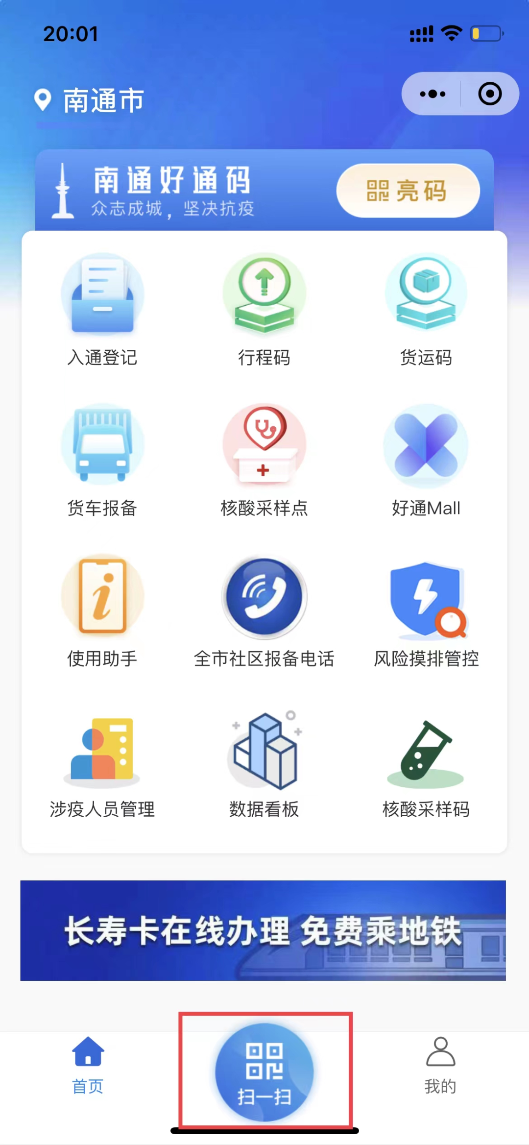 点击首页按钮返回首页,通过小程序底部的“扫一扫”功能,扫描用户提供的“好通证”即可核验。