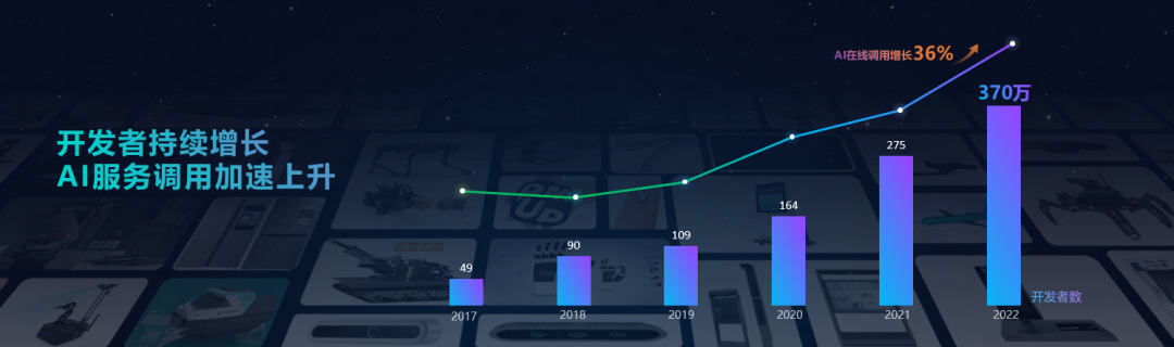 时隔一年,科大讯飞开放平台2.0提供的能力总数已从原来的440项提升至513项,开发者数量从260万提升至370万,且已携手金茂地产、古井集团、建设银行、国能集团等行业龙头,在教育、金融、医疗、能源、地产等14个行业中应用落地。