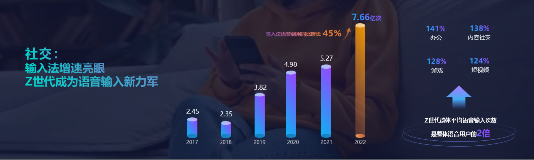 其他方面,在社交场景,近一年科大讯飞输入法语音调用量同比增长45%,已超过平台AI调用增速。其中,Z世代群体对语音输入更为偏爱,女性使用语音的比例是男性的1.4倍。语音输入已成为日常交流中人机交互的重要方式。