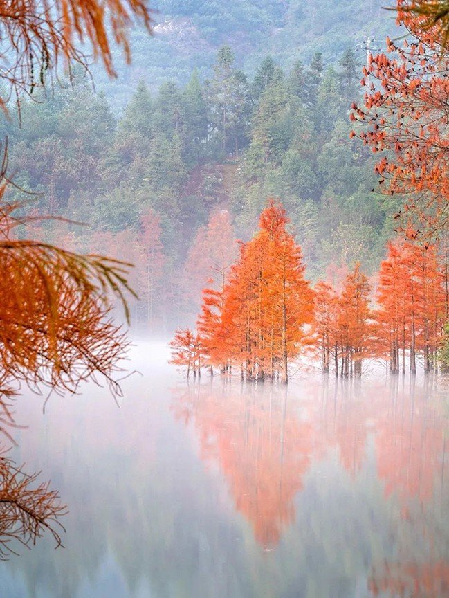 不止是中央山公园,在温岭的太湖水库、临海的江下渚、黄岩的长潭水库、仙居的谷坦水库…处处都有水杉的身影,每一处都是拍照打卡的好地方,随手一拍就能出片,这是台州秋天的代表色。