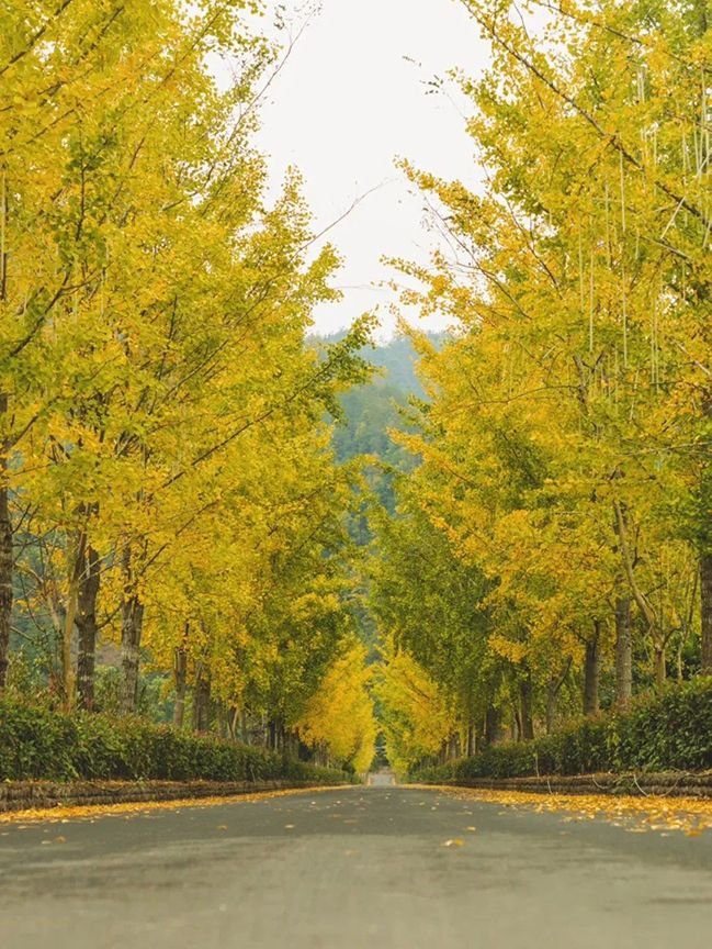 深秋的台州去哪里呢?去龙溪乡奓垟村的银杏大道,看田野中两排笔直的银杏树闪耀着丰收的金黄色;去鎏金梯田看收割后的稻田,田埂的绿和土地的灰褐色间次排列,向远方延伸。