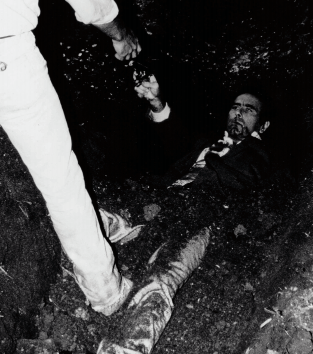 而这场戏是三位主创——乔尔、伊桑及他俩的摄影师巴里·索南费尔德在电影主体拍摄完成很久后才补拍的。得克萨斯的泥沙刚把演员的脸遮住,跟着就是纽约坟墓里补拍的画面,伊桑扮演被害人,被活埋后还在挣扎,前景中凶手的腿由乔尔的腿出镜完成。