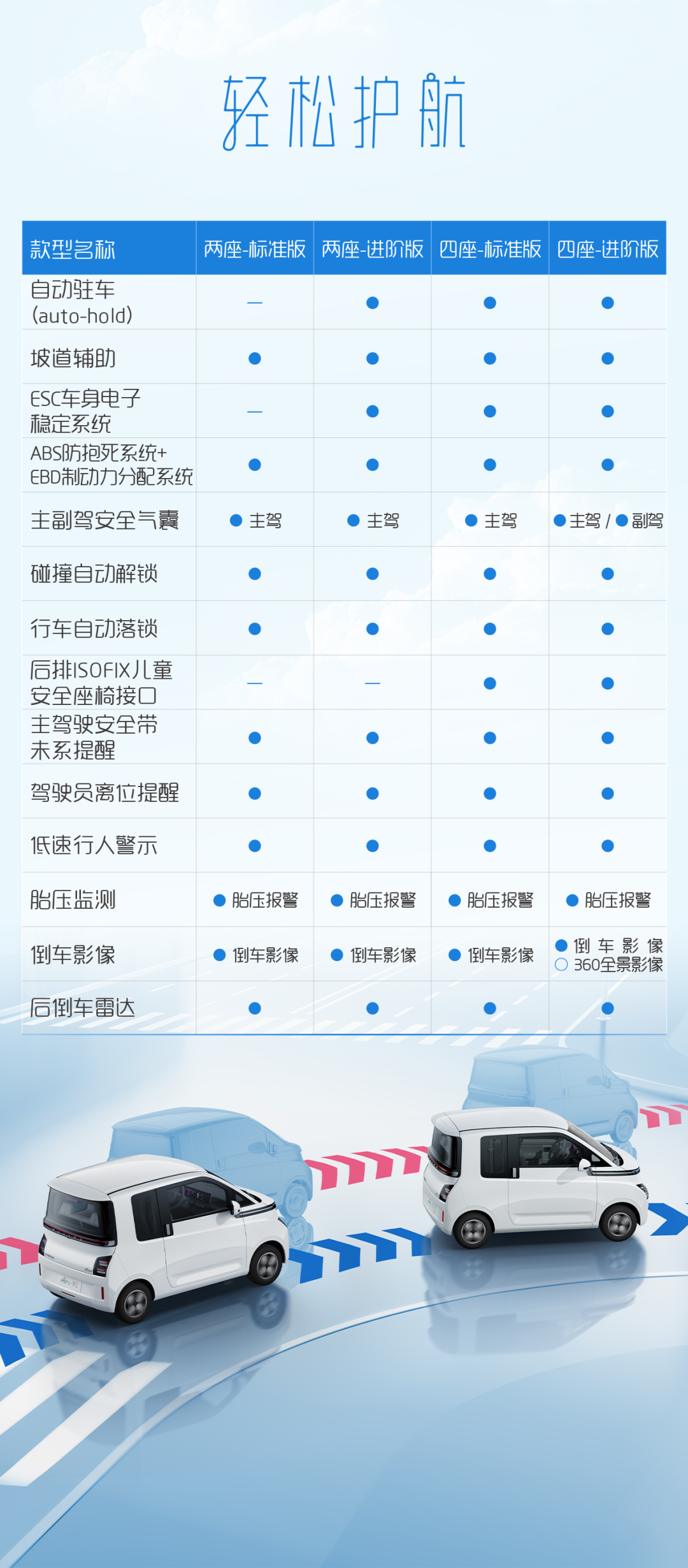 IT之家 11 月 24 日消息,五菱汽车今日公布了 Air ev 晴空详细配置信息,两座版和四座版各提供标准版和进阶版两种配置选择。