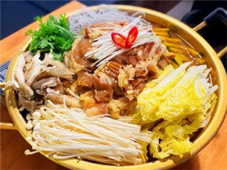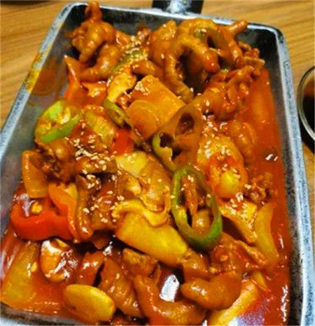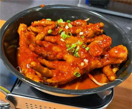 芝士排骨鸡爪锅,软糯的鸡爪加上地道的韩式酱料,再撒上一把芝士,入口软糯,芝士浓郁。丝丝连连的肉被留在嘴里,味道渗进了鸡爪的每一个角落。