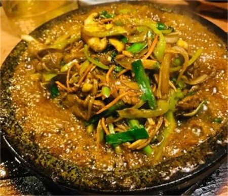 烤肉炒杂菜,这道菜不辣,里面有韭菜、胡萝卜、豆芽、香菇、牛肉,味道偏甜,香气扑鼻,牛肉是经过腌制后再烤制的,纹理清晰,非常嫩。