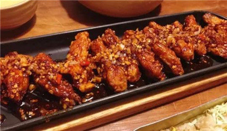 特别推荐他们家的炸鸡,记得好像有四种口味,大蒜酱油炸鸡、调味炸鸡、甜辣炸鸡、原味炸鸡,外皮炸色酥脆,肉质细嫩多汁,喜欢有骨头的,啃着也爽~