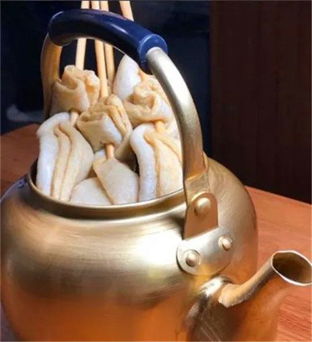 喝酒必备鱼饼汤锅,是一个水壶装的,鱼饼与金针菇等佐料的加持,暖心暖胃,高汤清香鲜美,尝一口都能鲜到掉眉毛!