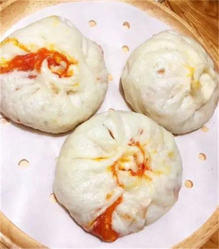 泡菜芝士包,特别香芝士泡菜肉丁,饱满的馅料,拉丝很满足。