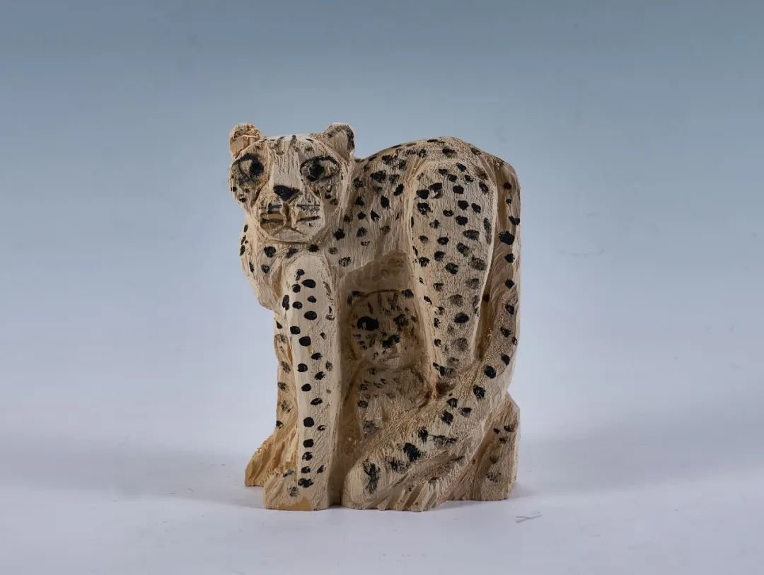 ▲ 周雷 豹与子 17×18×24cm 木、墨 2021