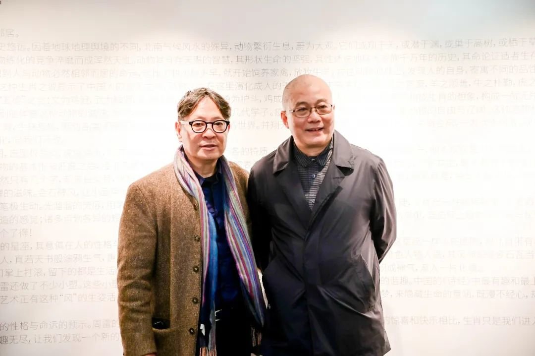 许江在专文中写到:“周雷的构图颇有金石印篆之功。中国印篆虽然只有几个字,却朱白交替,纵横有致,疏密中构成无尽山河。周雷窥得个中的密钥,让动物依势而长,循形就意,端出万般变化。动物之形,恻影俯视,盘桓大度,正自有书简与汉碑的滋味。金石碑风,让小画存大气,其中又有虎翼、牛角等诸般奇形妙想,频添不尽生趣。”