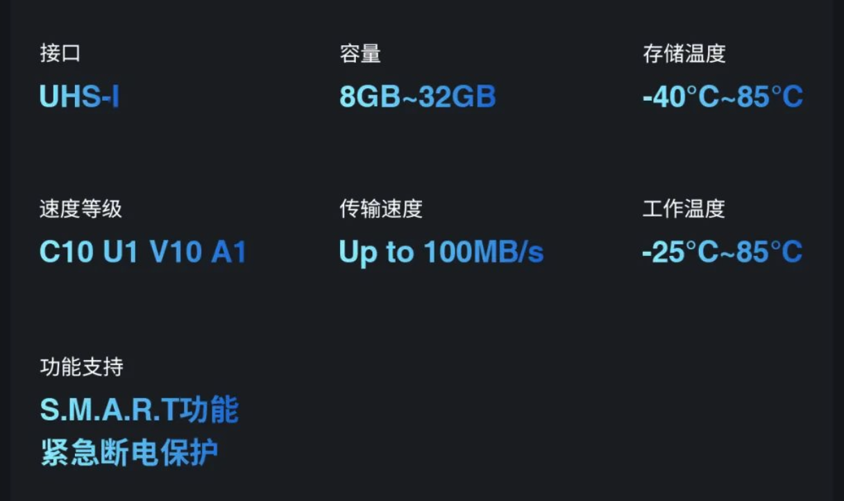 据介绍,性能方面,该产品匹配 Class 10 速度等级,确保连续传输速度可达 10MB/s,并对读写命令的响应优先级进行优化,有效地避免了播放卡顿、失真、断断续续的情形。
