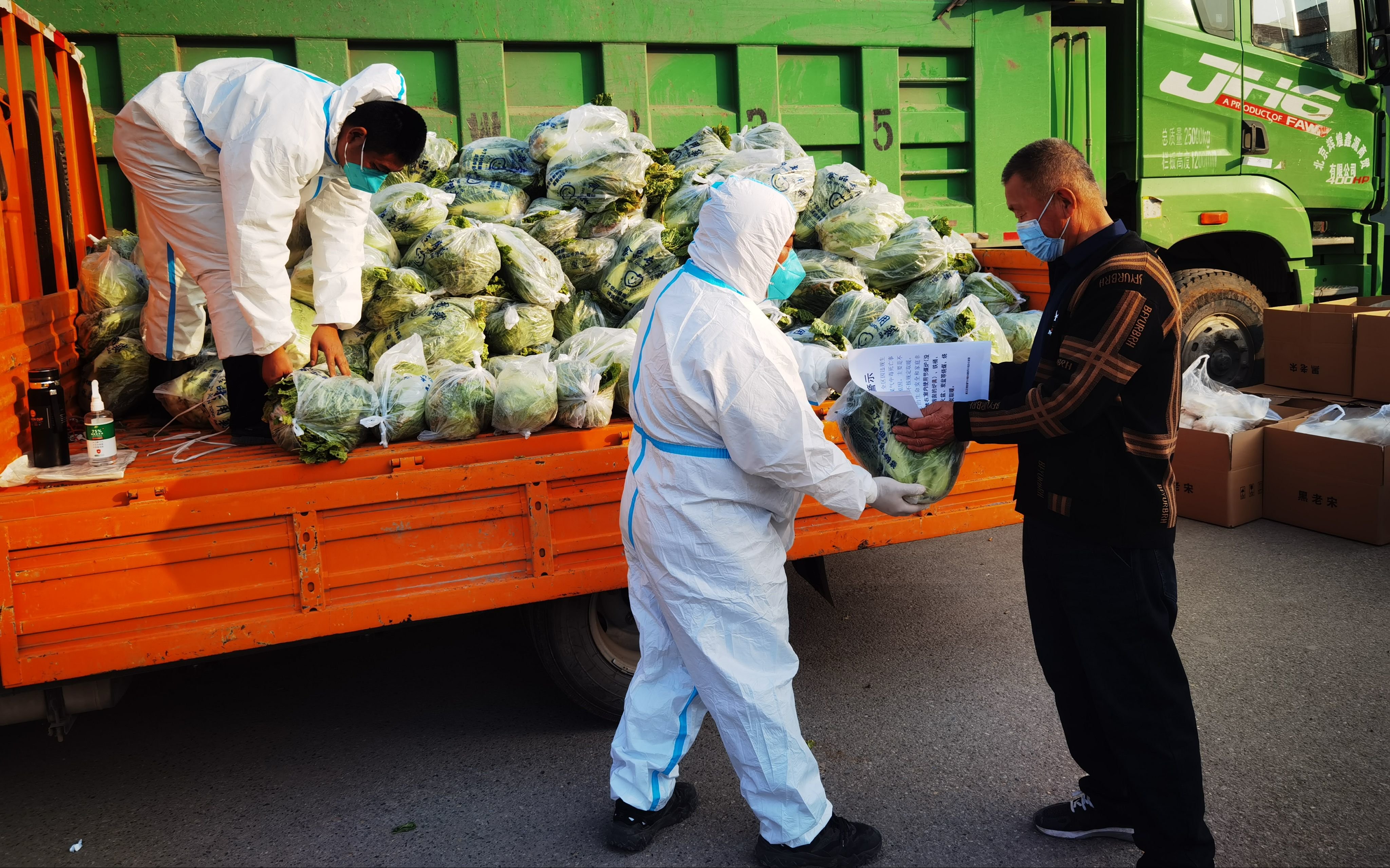 木林村于11月21日正式进入临时封闭管控期,当时,村民史淑芝和张贯起种植的大白菜刚采收一半,田间还有5亩大白菜等待销售。考虑到白菜收获即将进入尾声,村两委干部、下沉干部、志愿者等十多个人协助菜农连夜采收,镇里的爱心企业职工帮忙包装、运送,第二天在核酸检测时,统一发放给了村民。