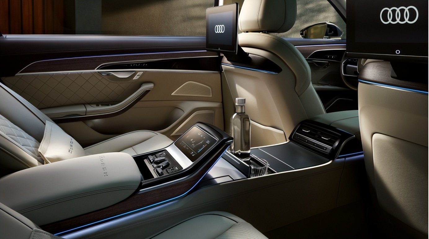 值得一提的是,大灯组还能够经过数字化技术投射光源,比如在开门或锁车时,车辆前方可以投射出奥迪品牌logo,视觉效果明显。车辆侧边造型修长,车顶线条设计很自然,可以确保车内乘客头部空间,而大面积镀铬轮毂也将豪华气质做到了最好。在细节方面,翼子板、c柱、尾部、轮毂均标有“Horch”标志,展现了自己与众不同的身份。在车身尺寸方面,全新奥迪A8L Horch创始人版也有所增加,轴距增加130mm之后,为用户带来越级般的感受。此外,该车的全景天窗也相比奥迪A8L增加不少,提供更开阔的视野。车辆尾部造型厚重,贯穿式尾灯以及银色饰条增加了层次感。车尾略微上翘的小鸭尾让这款商务轿车看起来更加动感。车尾右侧同样标有“Horch”的专属标志。数字OLED尾灯运用贯穿式造型,并具有动态调节功能,除了拥有流水式转向灯以及回家/离家灯光延时以外,当驾驶模式定为“动态”时,尾灯有专属动态效果,尾灯还能调整亮度,避免晃到后车车主。当后方有车辆迅速接近时,尾灯会自主点亮提示后方车辆。