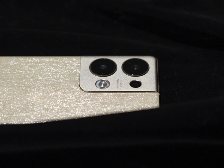 随着光线的变换,Reno9 Pro+的后盖可以看到光影流动,更加波光粼粼。“明日金”采用了金丝琉璃创新工艺,将高定礼服中丝绸纱线的意象融入CMF设计,更加精致亮眼,为用户带来更佳的视觉享受。
