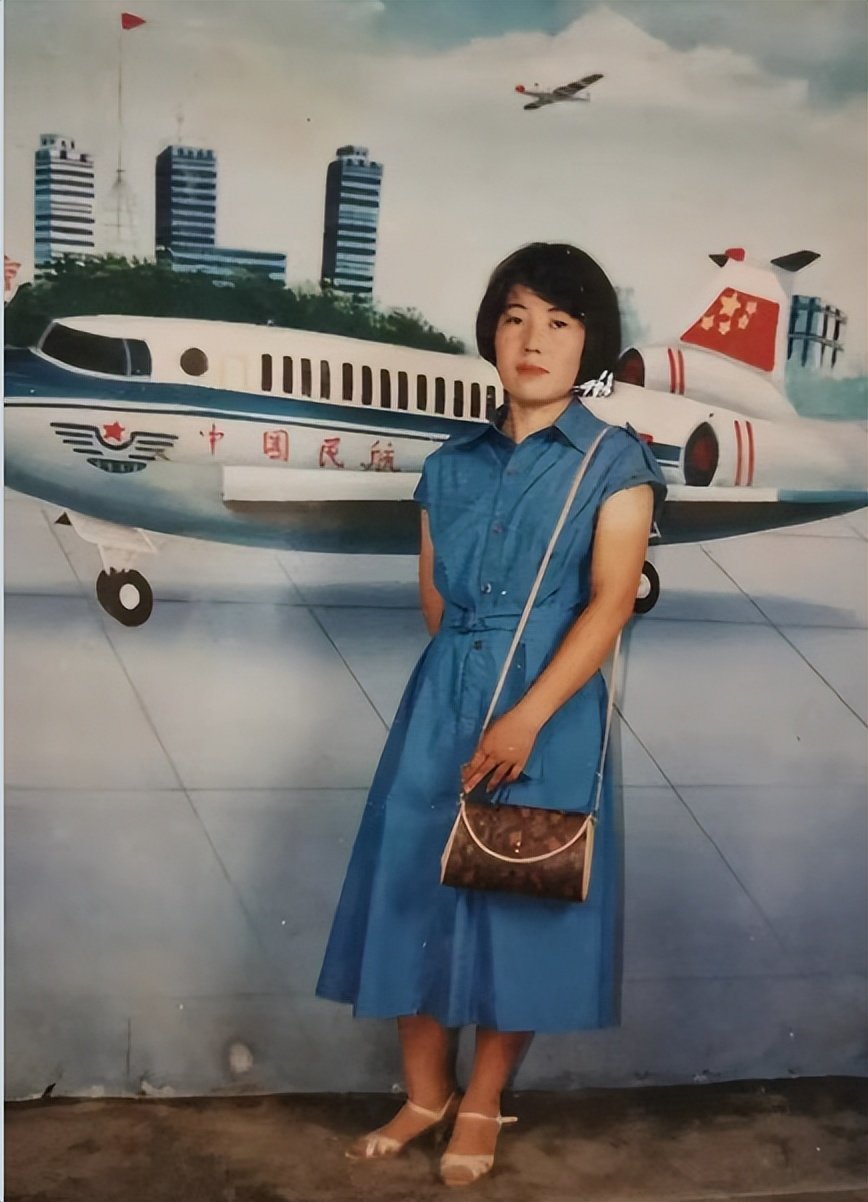年轻的女孩子站在中国民航宣传海报前拍照。她身穿裙子,肩头挎着皮包,干练的短发让她看上去显得十分精神。