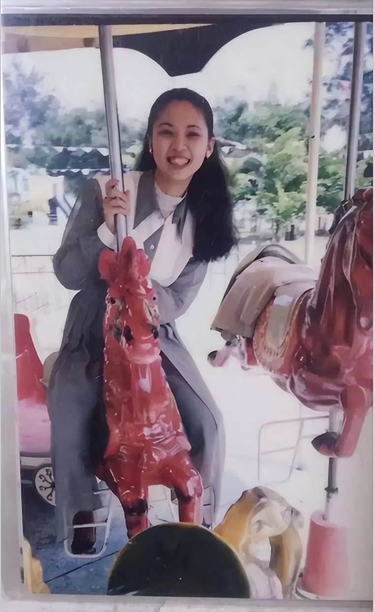 这张照片上的女孩和上一张照片上的女孩是同一个。在这张照片上,她骑在旋转木马上,长发飘逸,笑容甜美,古灵精怪。看着那笑容,仿佛能听到她晴朗的笑声。