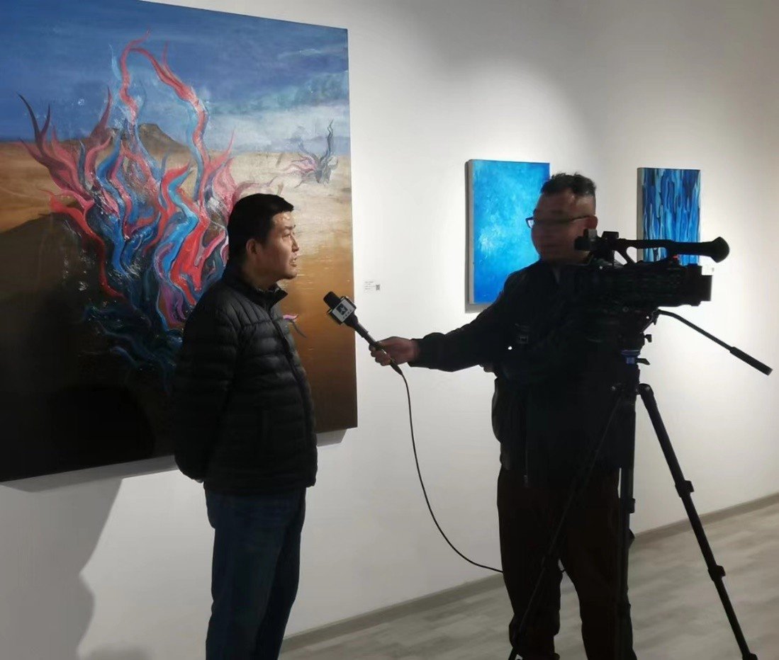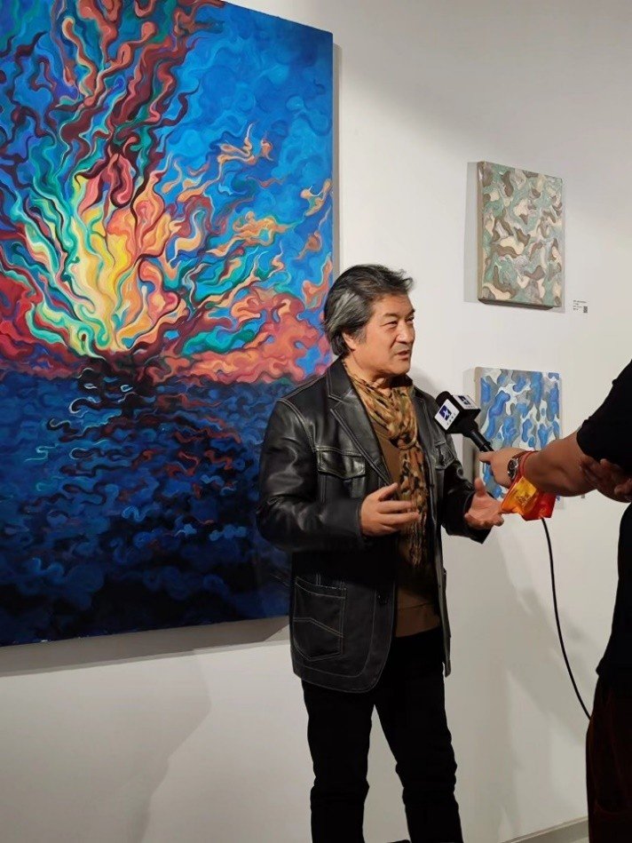 今天第一次看他的作品,我觉得他风格比较接近像欧美在20世纪上半期这种叫灵性绘画,其实它既不是抽象,也不是具象,它是一种西方式的。这些画家认为笔触色彩和形象应该直接跟心灵发生联系。那么甚至可能还带有一些宗教的色彩,当然这部分我觉得现在好像国内也有一部分艺术家就在关注和创作这部分作品,我觉得今天他这部分作品就是这种风格的一个探索。