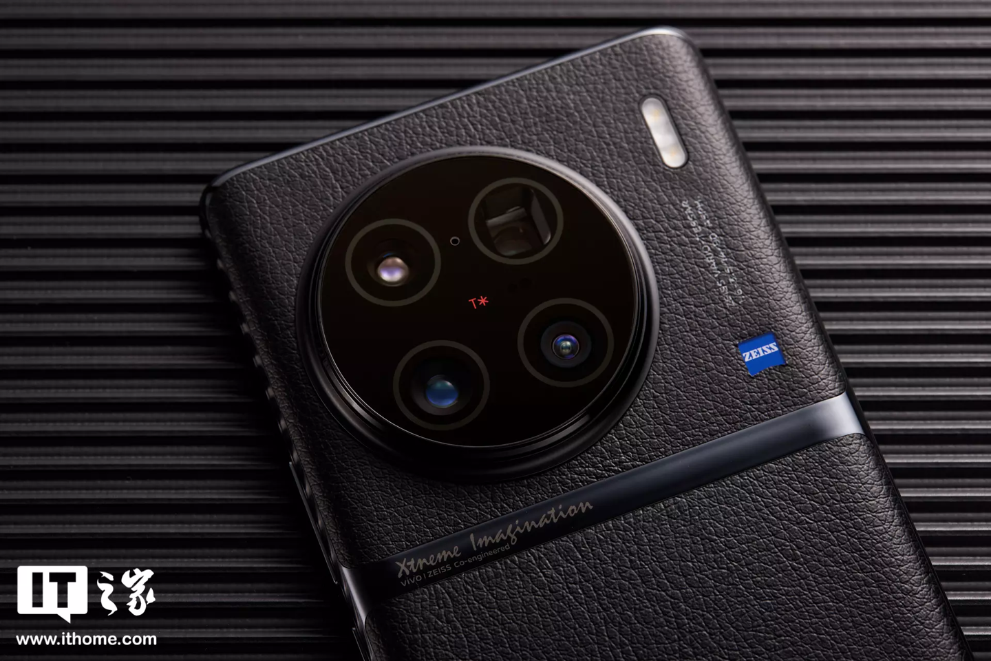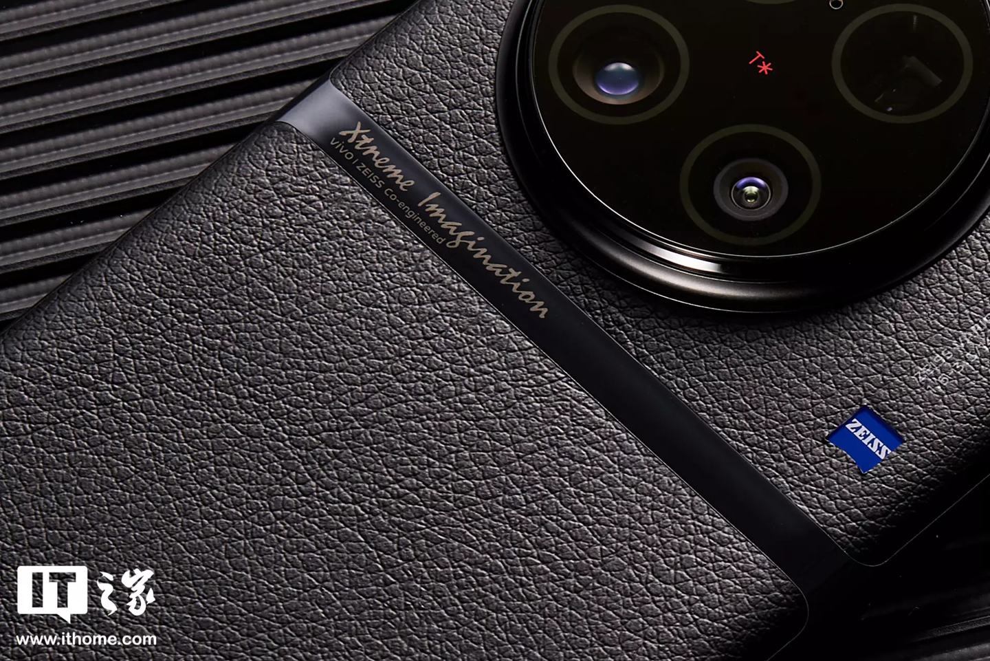 缎带云阶上还印有 Xtreme Imagination / vivo-ZEISS co-engineered 的字样,而整个云阶采用了缎带光刻⼯艺,具备很强的陶瓷质感,与机身的素皮形成了非常明显的光哑对比。