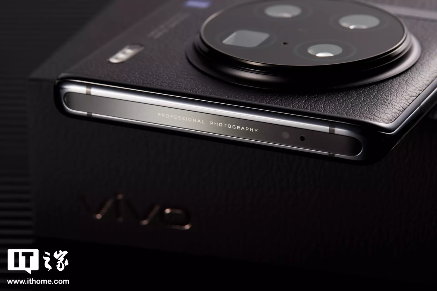 摄像头下方,来到了 vivo X90 Pro+ 设计上最大的亮点 —— 缎带云阶。