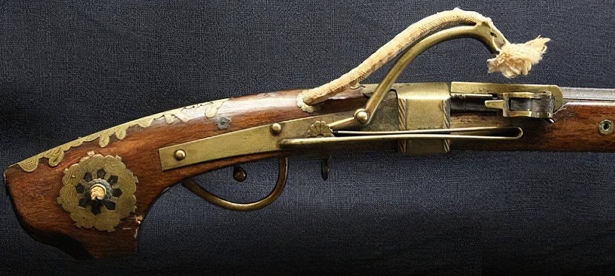而到了1475年,欧洲人对相对简陋的蛇杆进行了进一步改进,军迷更加熟悉的带有枪机击锤的火绳枪终于出现了。