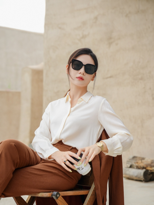 谭飞的真丝服装均采用6A级桑蚕丝,触感丝滑柔顺,泛着珍珠般温润的光泽。且加入了一定比例的弹力纤维,不易劈裂,更适合职场女性的通勤和日常着装。
