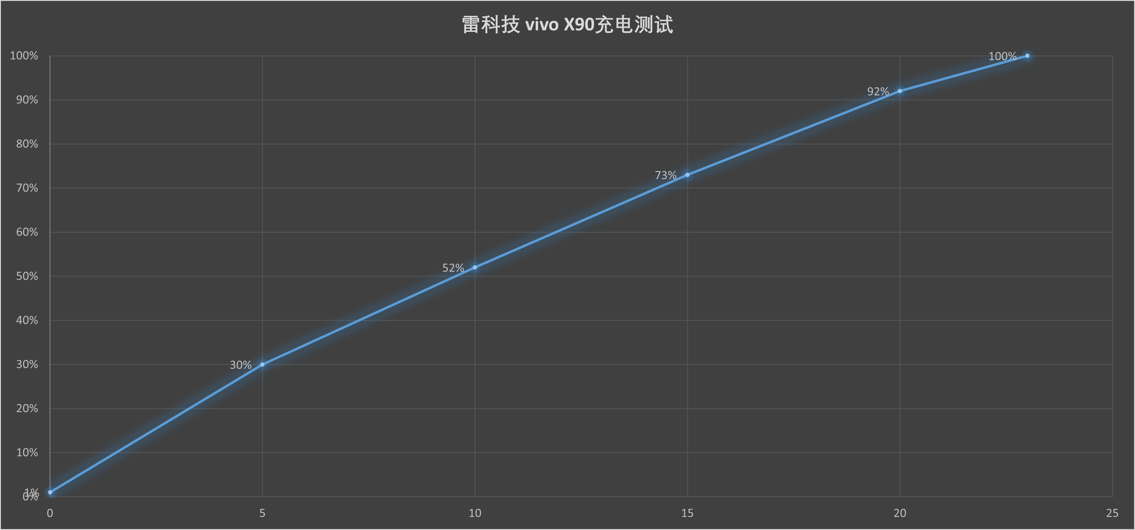 其他配置方面,这次vivo X90搭载一块4810mAh的双电芯大电池,并带来了120W超快闪充,这也是X系列基础款首次用上超百瓦功率的快充。实测在快充的情况下,该机用时9分钟可充入50%电量,23分钟完全充满电量。对于这块将近4810mAh的电池来说,充电速度相当可观。
