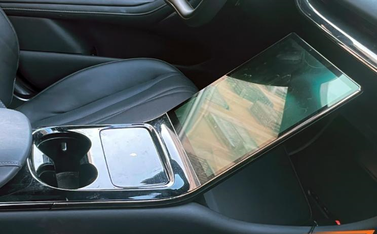 具体可以看到,新车在扶手台上配备了一块大尺寸的触摸式屏幕,屏幕下方依次是手机无线充电区域以及两个杯架,具有很高的科技感与便捷性。