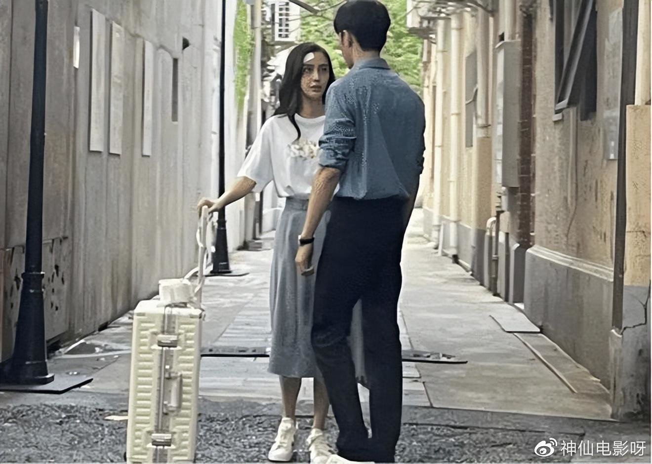 路人镜头里的赖冠霖,白T搭配黑色运动裤,干净清爽,没有过多的装饰和花里胡哨的造型,笔挺地站在对手演员面前正在过戏。