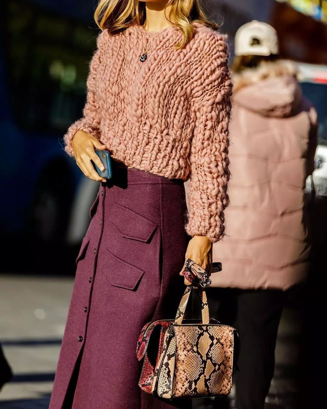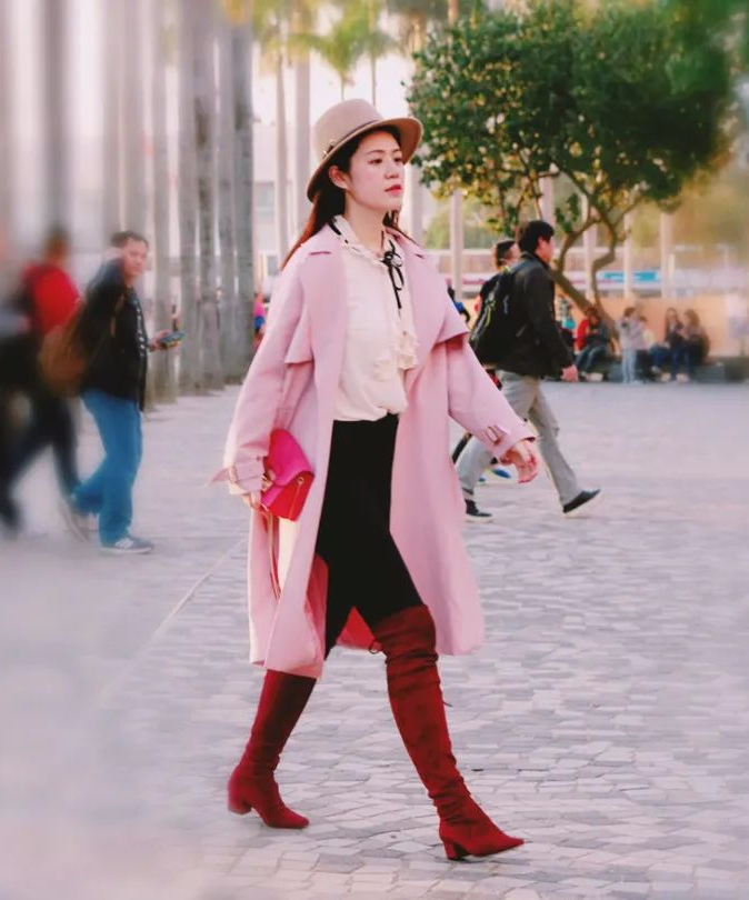 甜美的粉色可以让酒红色也穿出软糯的少女感,而酒红色的华丽高贵则能提升粉色的质感。