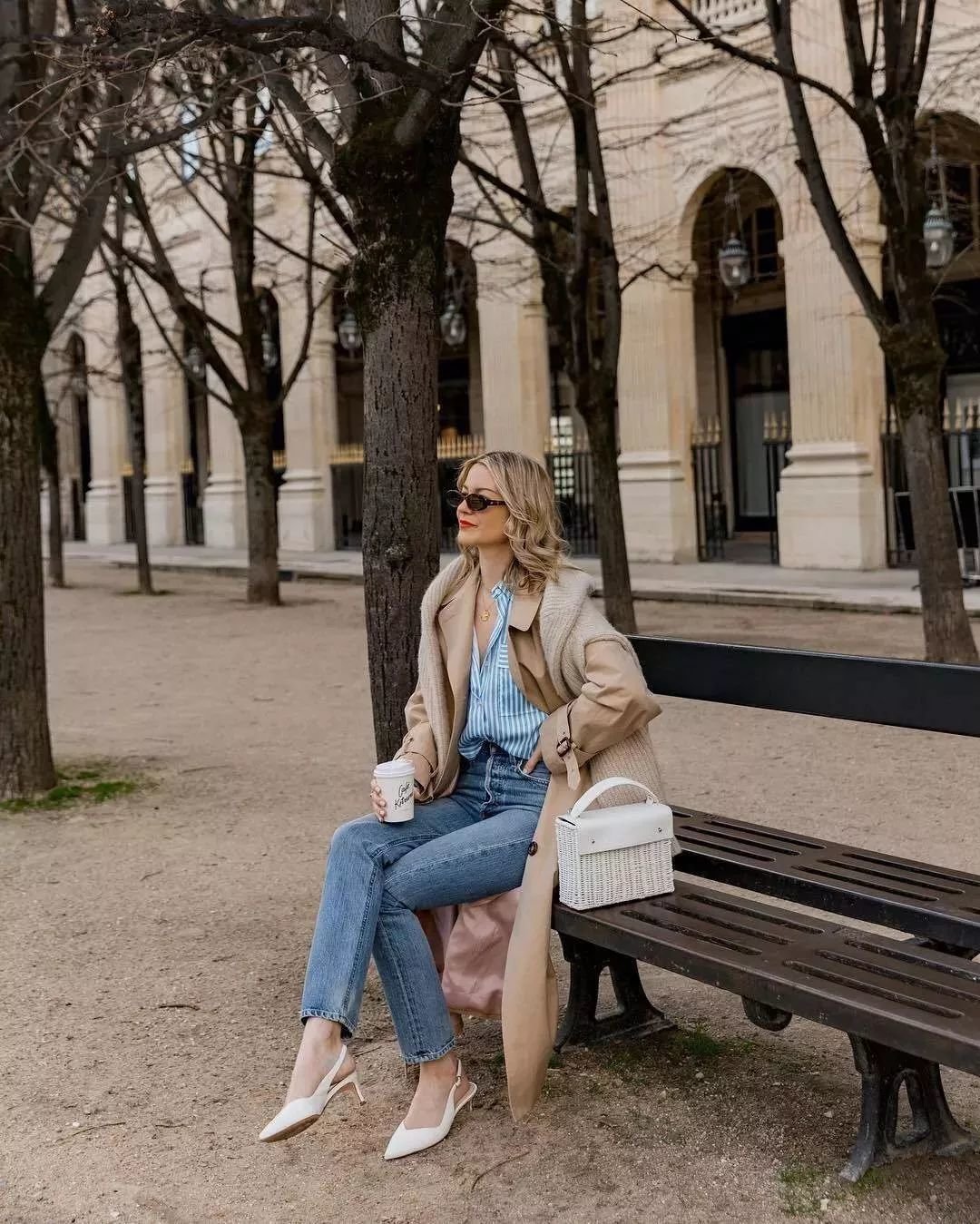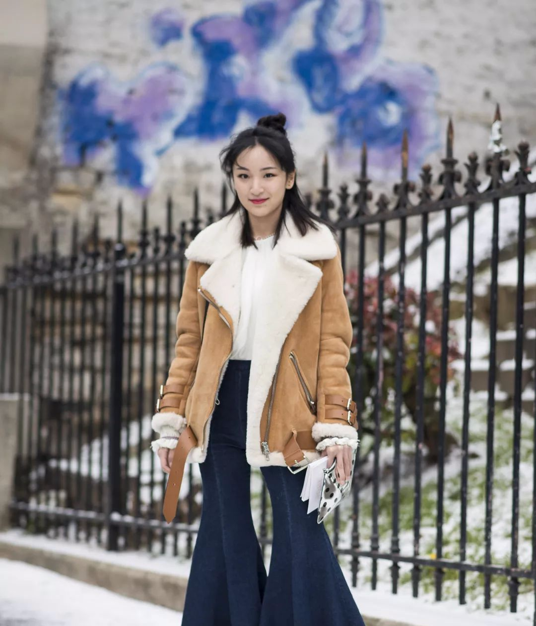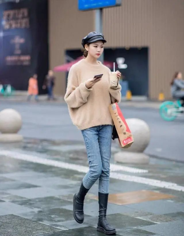换上一条蓝色牛仔裤,温暖又时髦,不会让你被淹没在人群里。
