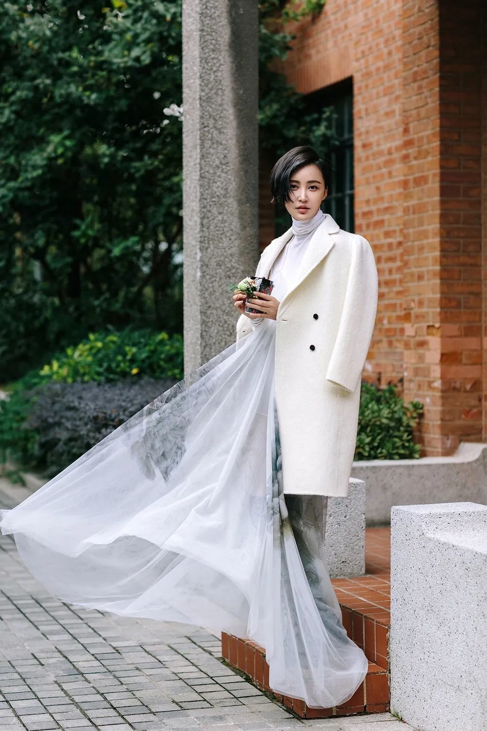 大地色和白色相结合,可以说是人人都可以驾驭的组合。原本有些平淡的大地遇上淡雅的白色后,气色一下子就变得好起来了,大方优雅。