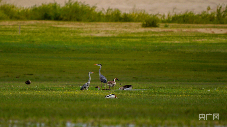 大雁、苍鹭在湿地里悠闲地栖息、觅食(央广网发 白敖敏 摄)
