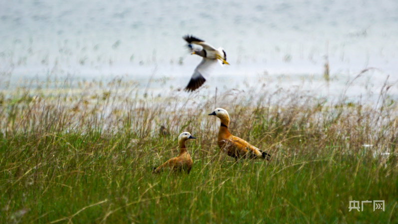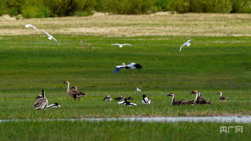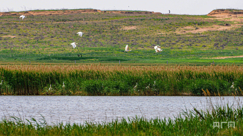 成群的鸟儿或展翅飞翔,或栖息觅食,构成一幅优美的生态画卷(央广网发 白敖敏 摄)