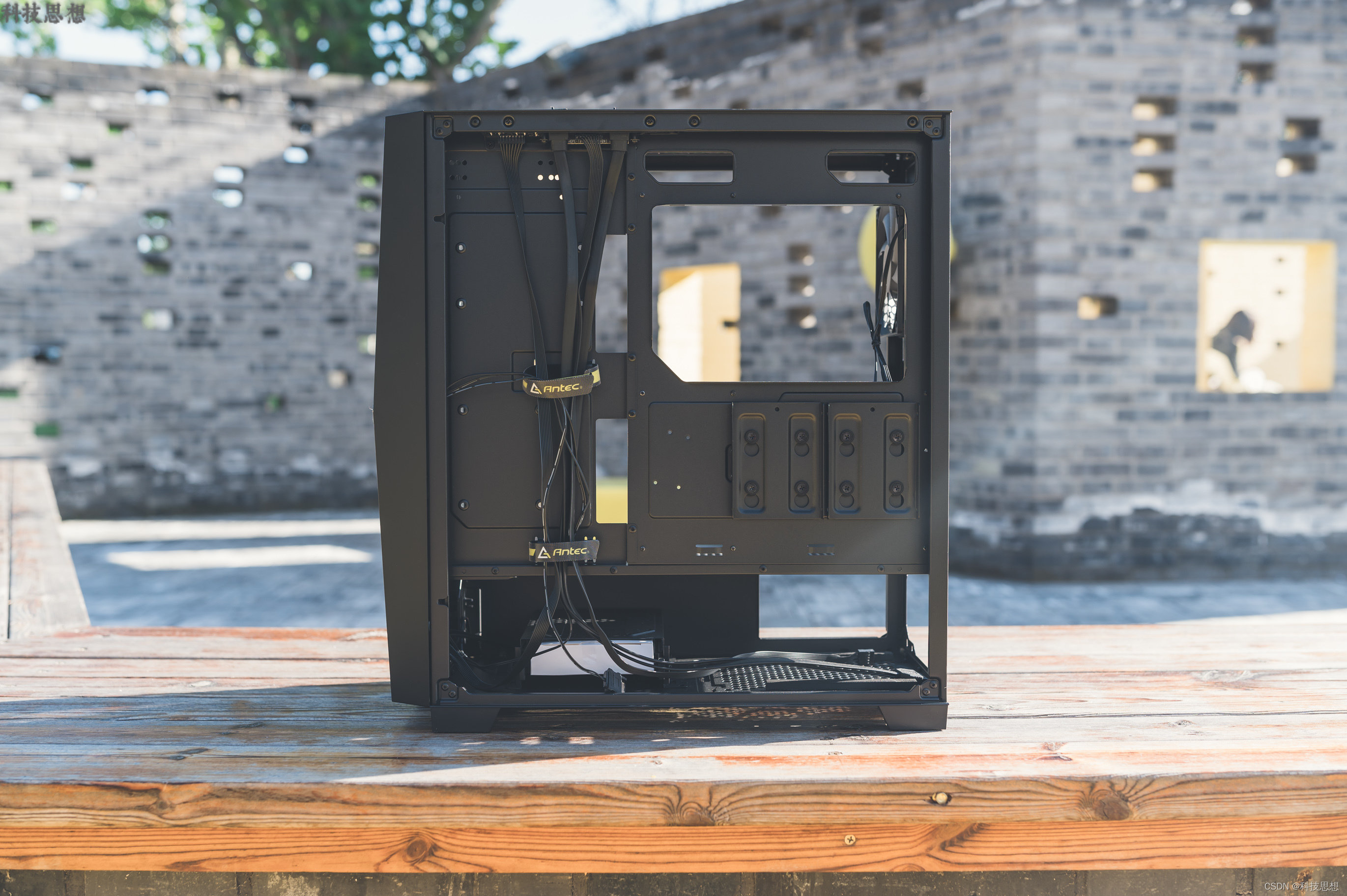 目前我在用一款安钛克DF800 Flux机箱,它和之前的DF700Flux、DF60Flux都是同一个系列,采用了一种特殊的散热结构,简单来说就是显卡可以从机箱底部和侧面获得进风,从顶部出风,从而实现一个垂直的散热风道,形成穿透式垂直降温系统,改进显卡的散热表现。