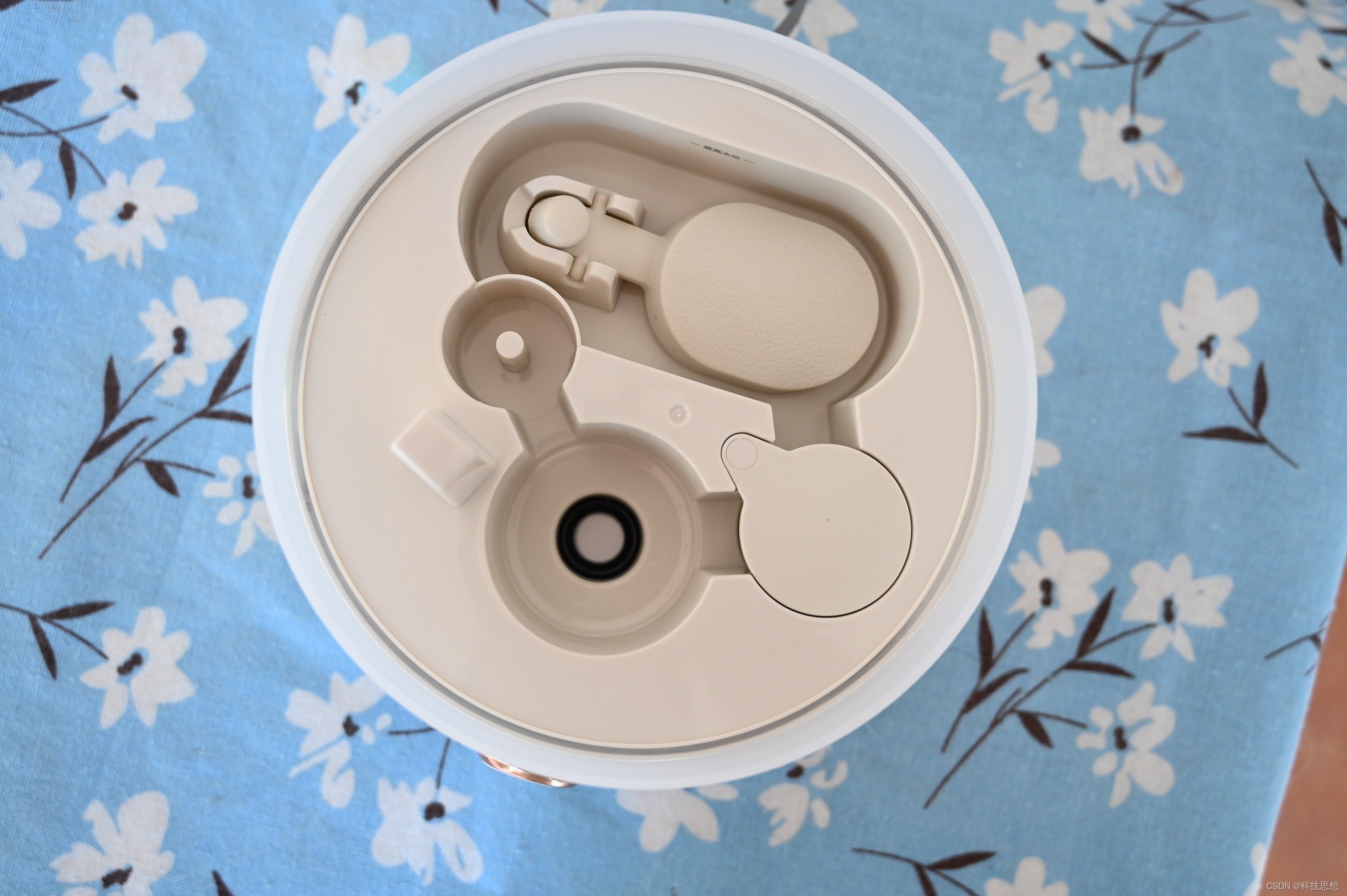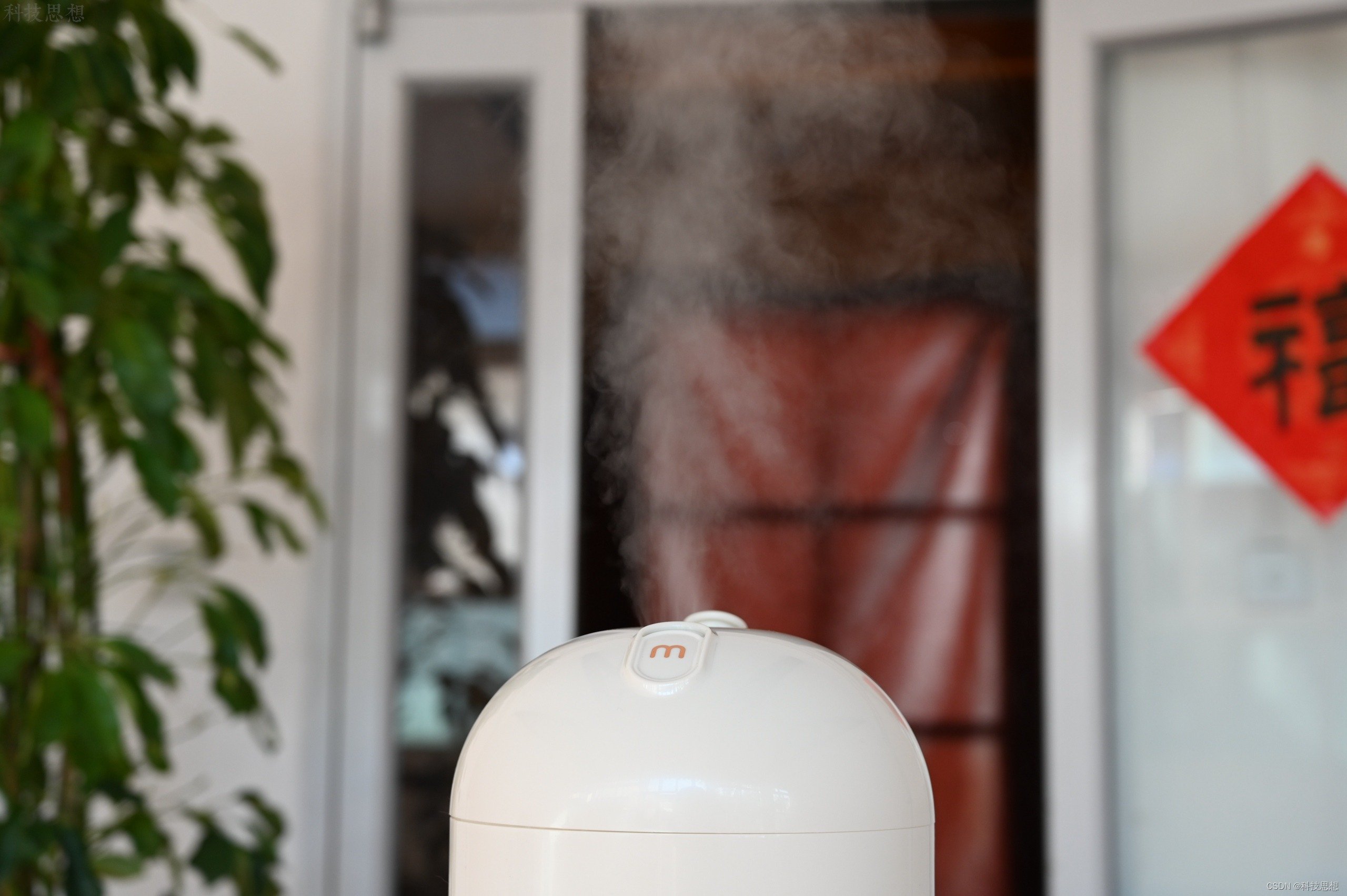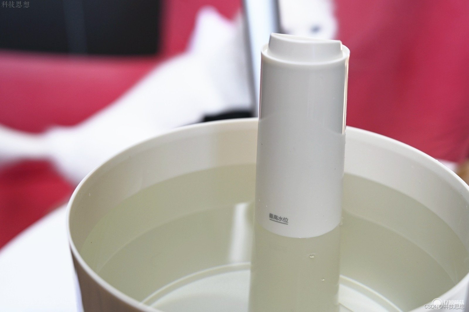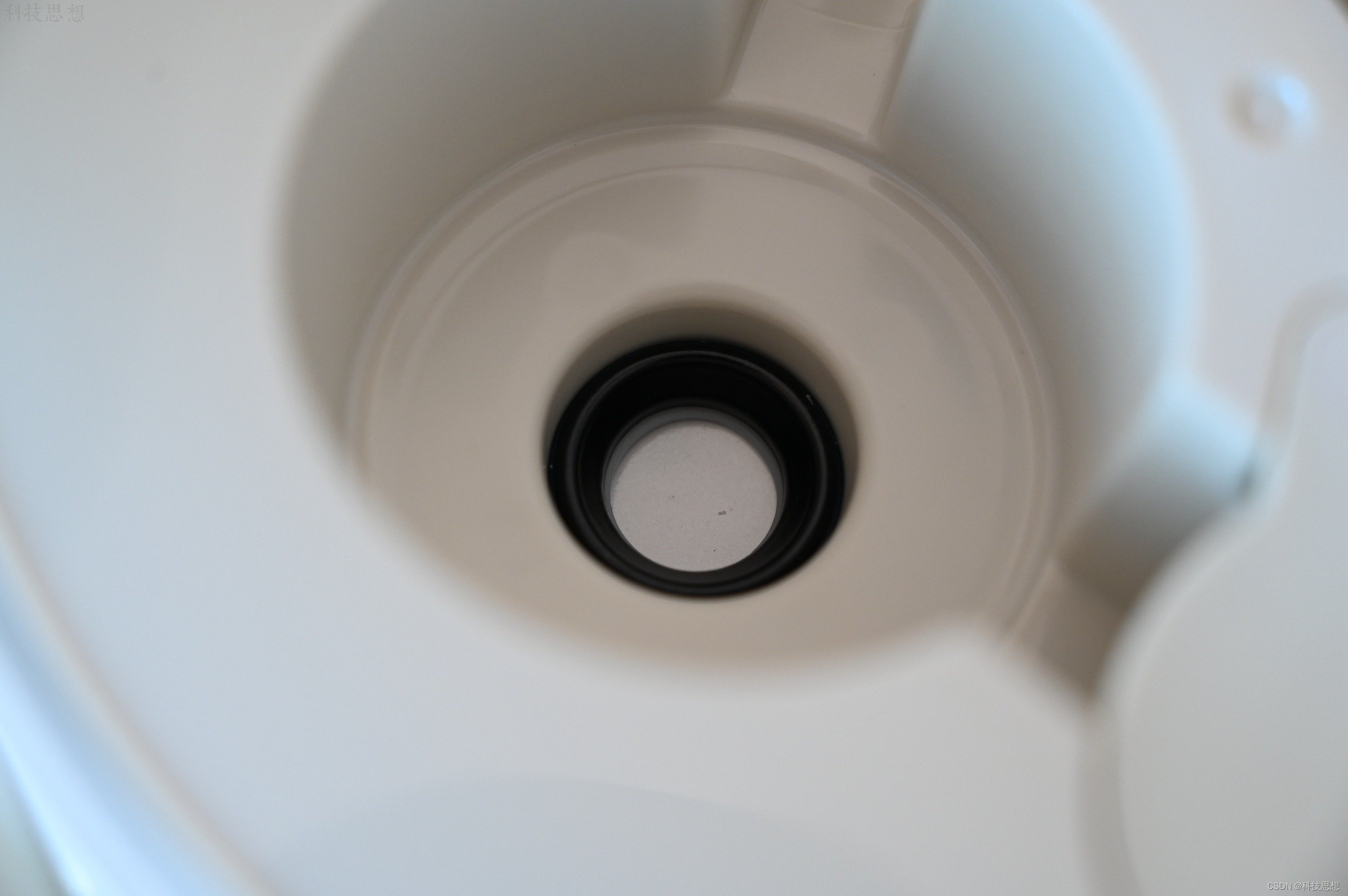 在水箱下面这一层,就是摩飞除菌加湿器生成水雾的工作区域。普通的加湿器生成的水雾软弱无力,很难覆盖整个房间,而摩飞除菌加湿器则可以喷出50cm的水雾柱,配合聚流出雾口的设计,可以让水雾在空中快速扩散,从而带来更加有效的加湿表现。