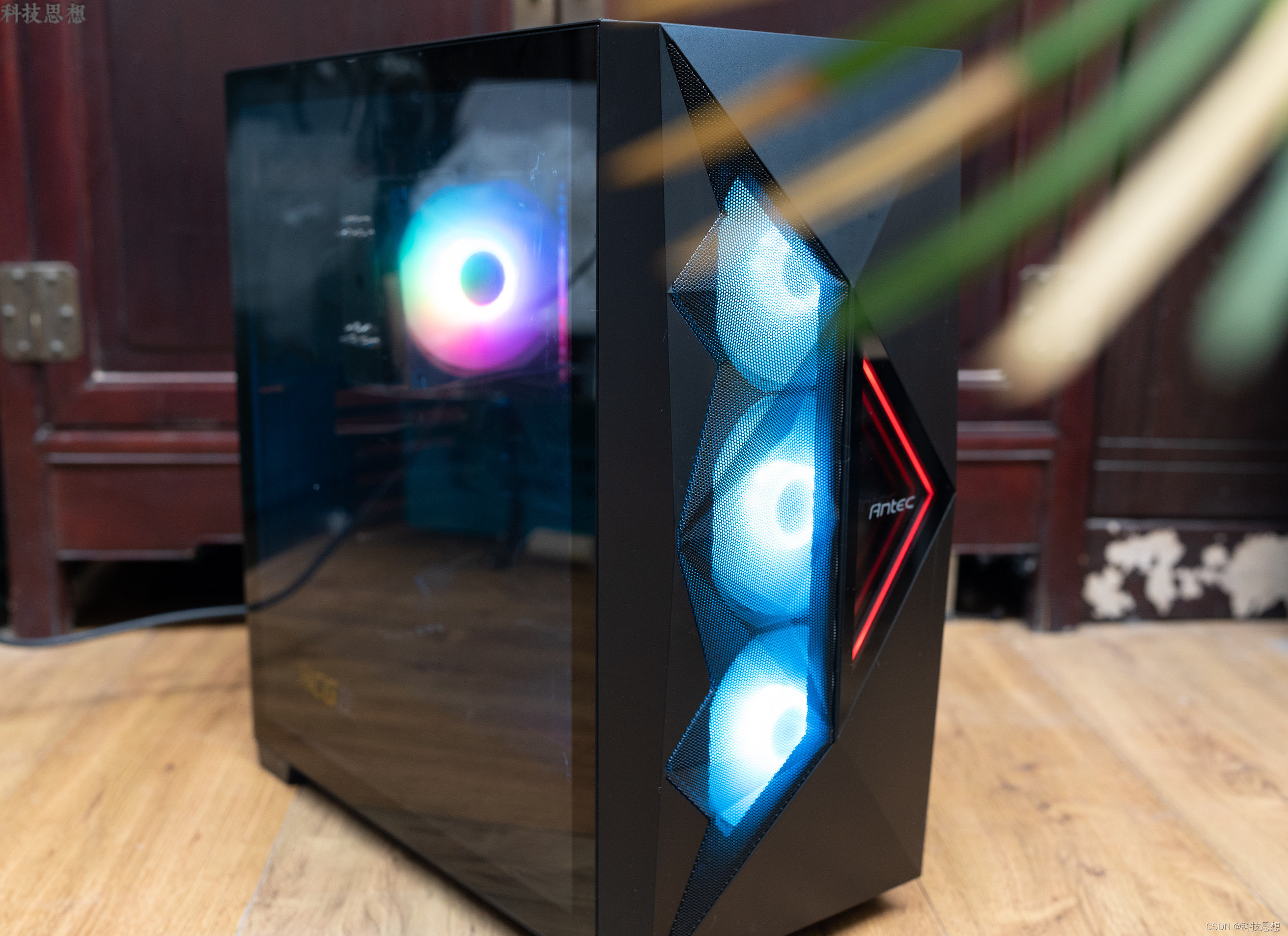 安钛克DF800 Flux前面板的造型设计很有科幻感,上面还带有特殊的ARGB灯效,兼顾了散热和美观性的平衡。此外这款机箱的兼容性也很出色,作为一款ATX机箱,能够容纳常见的主板和电源,并且有足够的空间安装双360冷排,而且它的硬盘位也很充足,有足够的存储扩展空间。