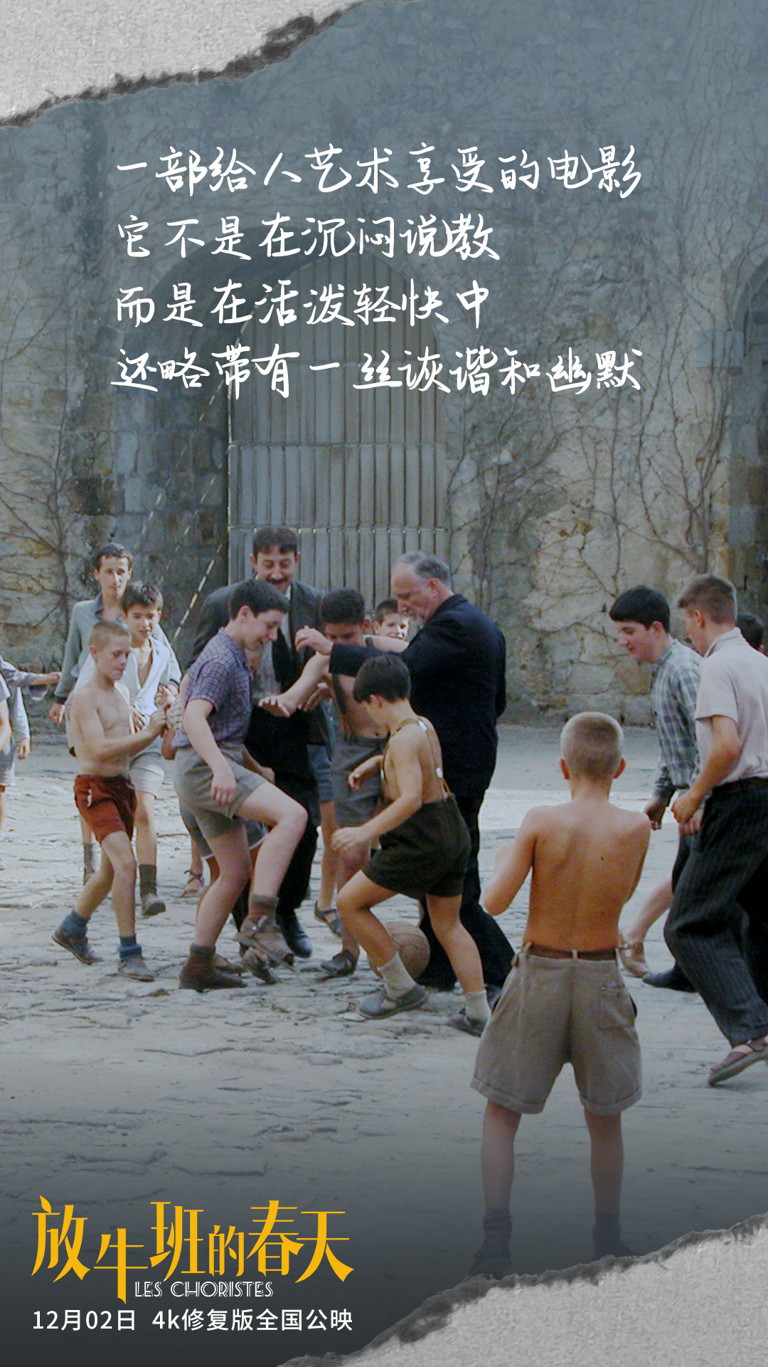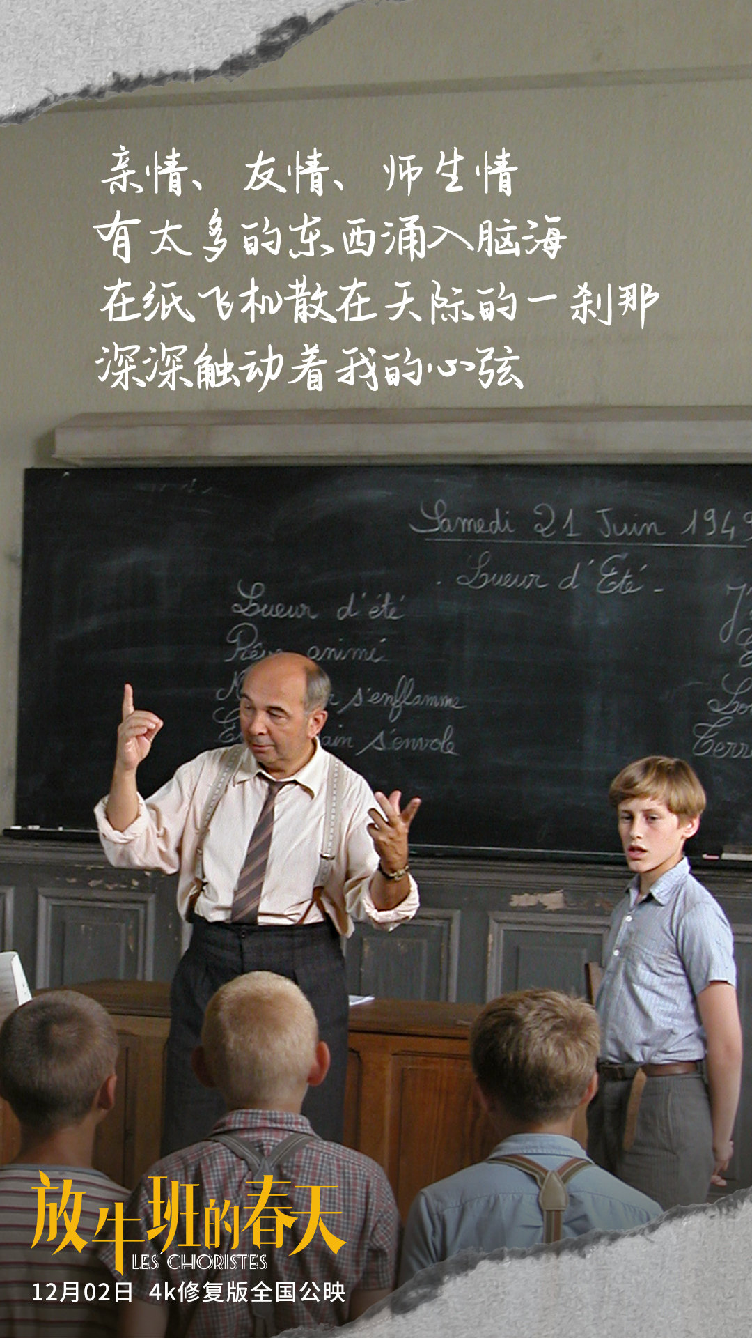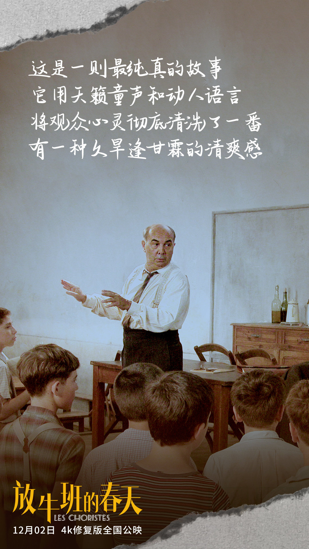 由法国国宝级导演雅克-贝汉监制,法国著名导演、制片人、编剧克里斯托夫·巴拉蒂执导的电影《放牛班的春天》,曾斩获法国2004年票房冠军、2005年法国金球奖最佳电影奖,时隔18年这部豆瓣评分高达9.3的治愈系口碑力作终于经典再现,12月02日登陆国内院线。