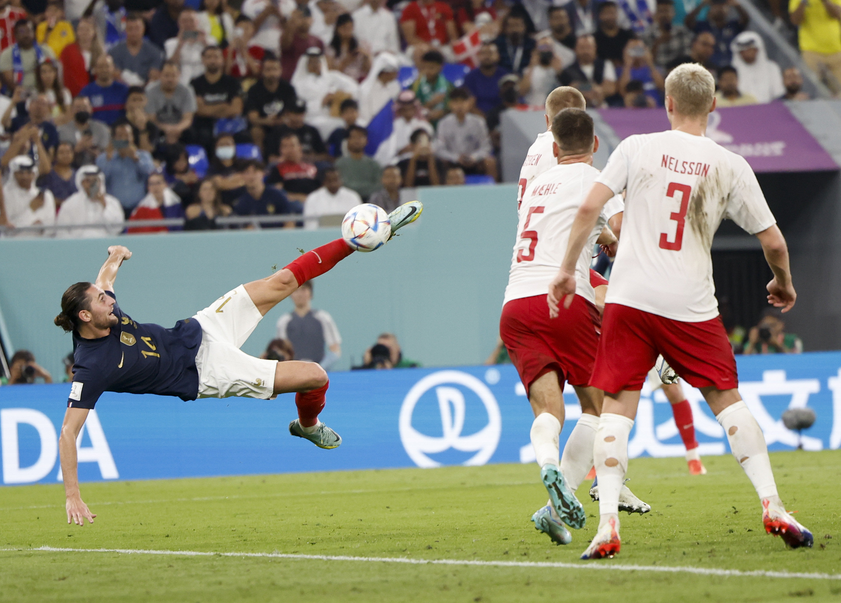 当日,在卡塔尔多哈974球场进行的2022卡塔尔世界杯足球赛D组比赛中,法国队以2比1战胜丹麦队。