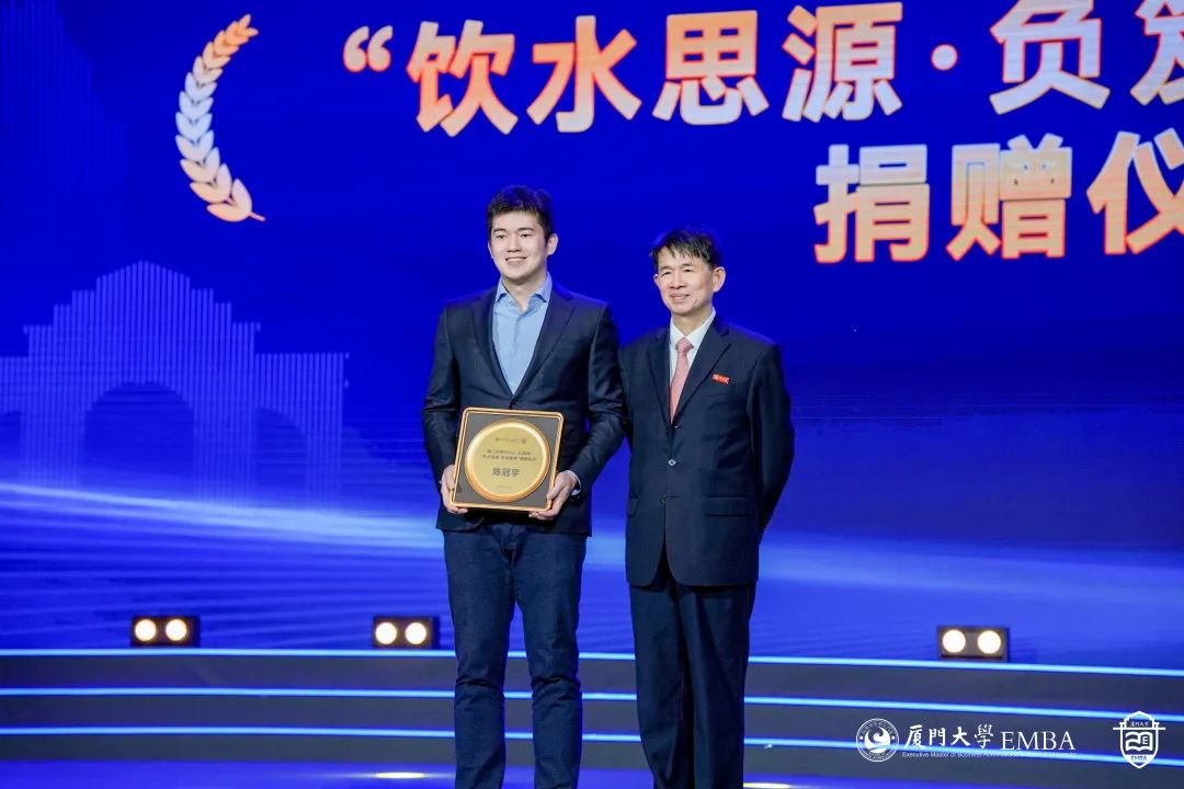 2002年厦门大学EMBA首届招生,感谢2002级校友对厦E品牌的认可、信任和支持,他们是敢吃螃蟹的人,他们是时代的开创先锋。厦门大学管理学院党委书记邱七星博士为班级代表颁奖。