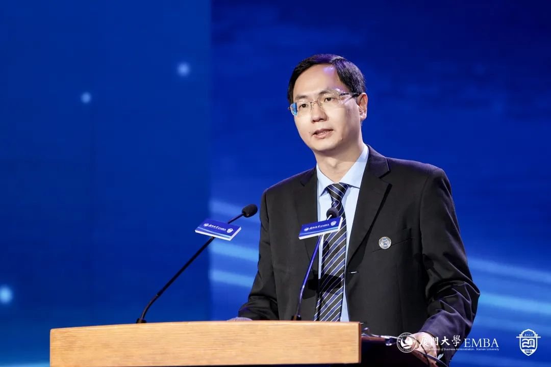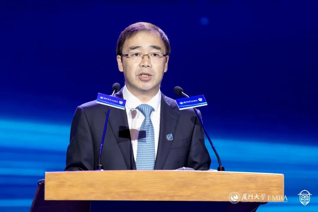 厦门大学管理学院党委书记邱七星代表学院致辞。邱七星向过去20年以来关心和支持厦门大学EMBA办学事业发展的学校领导、校友们和社会各界朋友致以最诚挚的感谢和最崇高的敬意。二十年前,厦大EMBA教育项目创办最重要的一个初衷就是:秉承嘉庚精神,创办一流商学院。我们围绕领导力(Leadership)、战略性眼光(StrategicalView)、国际化视野(GlobalProspective)和富有社会责任感(SocialResponsibility)的教育理念来设计培养课程和教学模块,坚持“学以致用、学以致道、道用结合、以道为主”的四个重要方针,可以用“一个初心、两个坚持、三个阶段、四 种文化、五个一流”来总结厦门大学 EMBA 的 20 年,即立德树人、培养高层管理者的初心,坚持全国布局、坚持市场化原则,从单证、双证到多钟办学方式并存三个阶段,独特的嘉庚文化、学习文化、金融文化、运动文化,以及一流的学生、一流的师资、一流的课程、一流的管理和服务、一流的教学环境和设施。