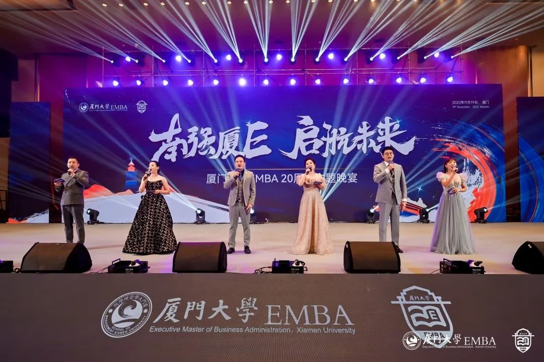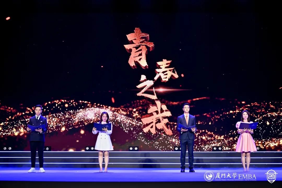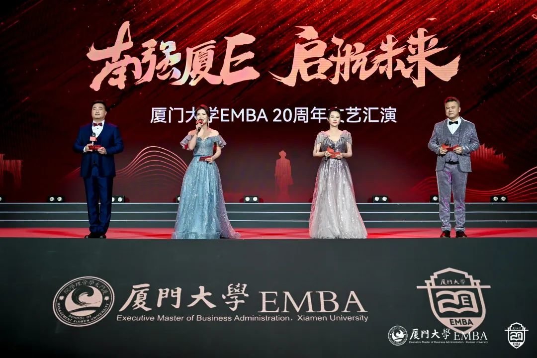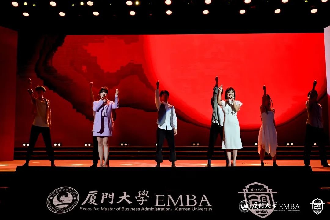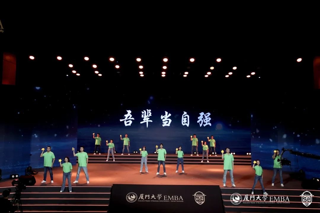 “厦大吾辈当自强!”厦大EMBA20周年文艺演出正式开始。从《南方之强》、《自强之势》,到《青春之我》、《时代之声》,同学们用深情的朗诵、真情的讲述,用最美的语言和歌声,唱出对母校的热爱,对时代的赞歌。