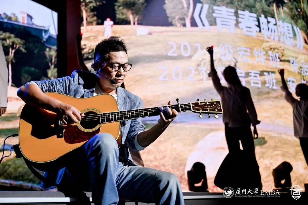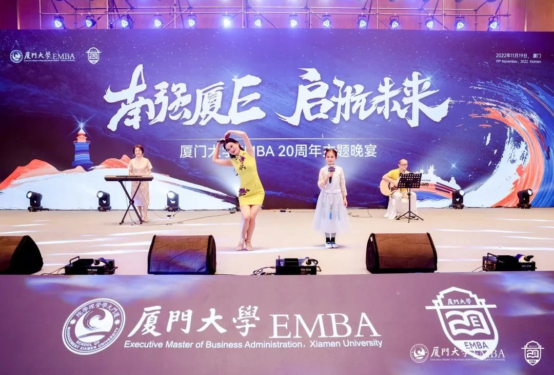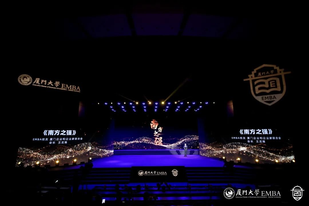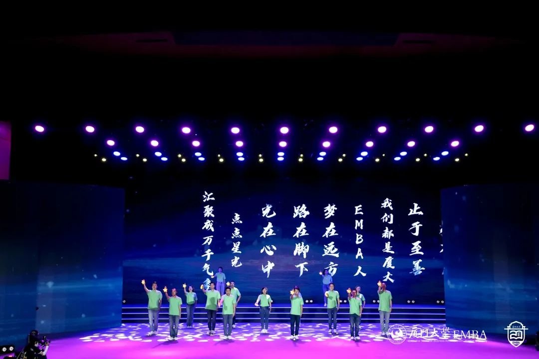 “厦大吾辈当自强!”厦大EMBA20周年文艺演出正式开始。从《南方之强》、《自强之势》,到《青春之我》、《时代之声》,同学们用深情的朗诵、真情的讲述,用最美的语言和歌声,唱出对母校的热爱,对时代的赞歌。